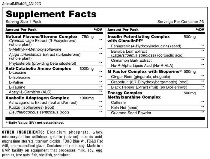 Información Nutrimental Animal M-Stak 21 Packs