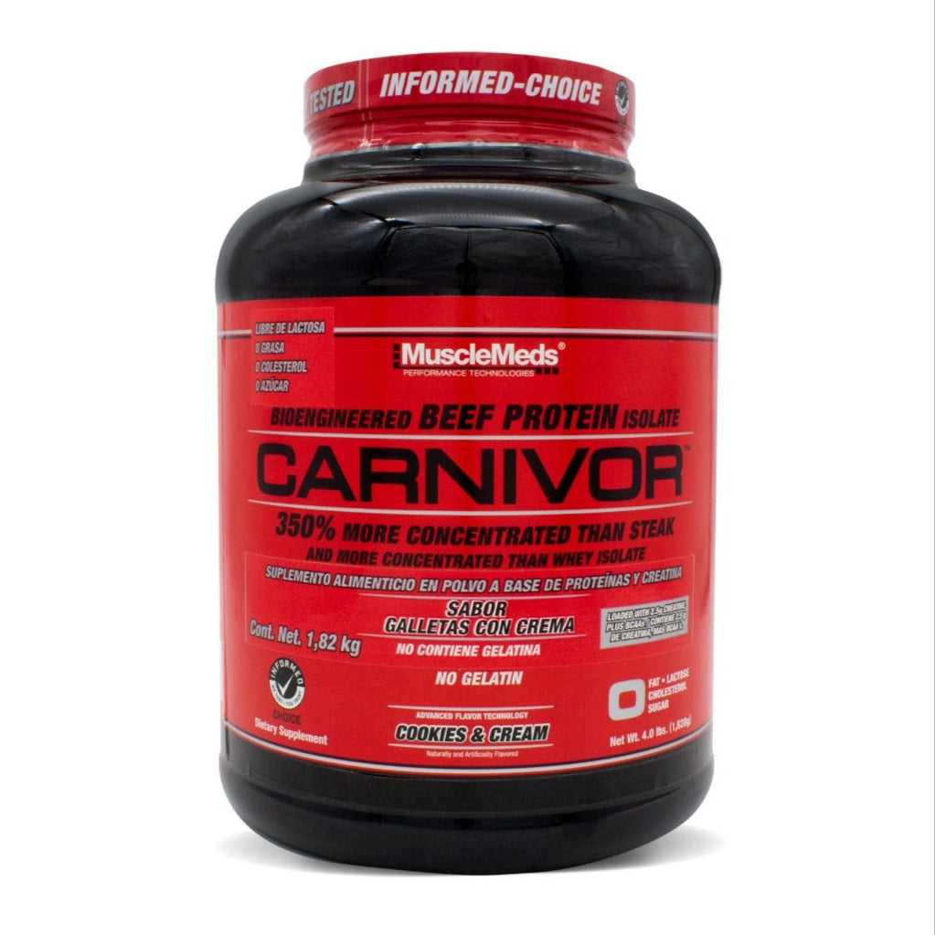 Es bien sabido que los fisicoculturistas y los atletas de fuerza consumen una gran cantidad de carne para ayudarse a desarrollar músculos e incrementar su fuerza. Pregunta a cualquier fisicoculturista y te dirá que obtiene mayores ganancias musculares y se siente más fuerte cuando come carne. Ahora, gracias al desarrollo de una avanzada proteína de carne de bioingeniería, MuscleMeds ha formulado una proteína de construcción muscular altamente anabólica. CARNIVOR no es como cualquier otro suplemento de proteína existente. ¡CARNIVOR fué la primera proteína de carne en el mercado y continua siendo la #1 en ventas de Proteína Aislada de Carne en el mundo!